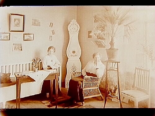 Rumsinteriör, två kvinnor.