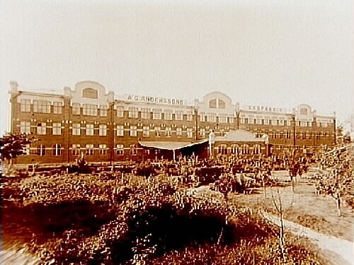 A.G. Anderssons skofabrik, trevånings skofabriksbyggnad i tegel med tre frontespiser.