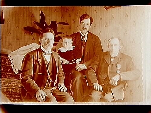 Släktgrupp, fyra generationer: farfars far, farfar, far och son.
