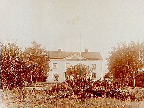 Ullavi gård, tvåvånings bostadshus med frontespis, veranda med snickarglädje.