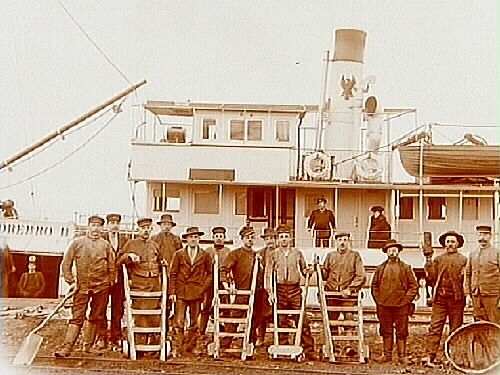 Ångfartyget Örebro II och 13 hamnarbetare i Örebro hamn.