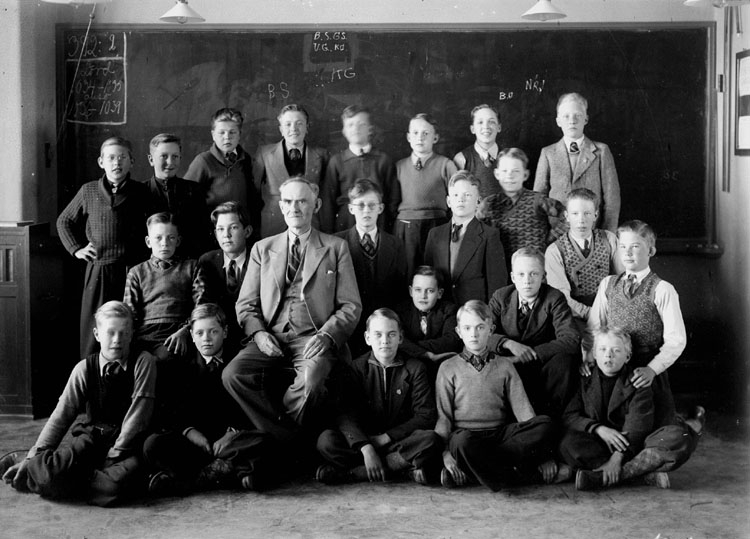 Engelbrektsskolan, klassrumsinteriör, 22 pojkar med lärare E. Björling.