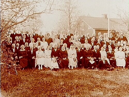 Bröllop. Brudpar och bröllopsgäster.