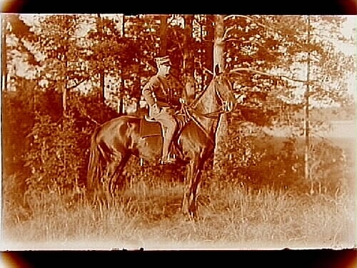Ryttare till häst.