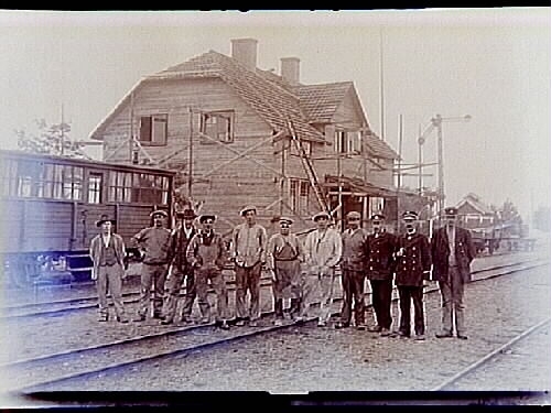 Kvismare järnvägsstation, reparation av stationshuset, 8 banarbetare och 3 stationskarlar.