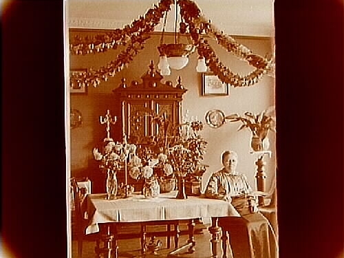 Rumsinteriör, en kvinna, fruns födelsedag.