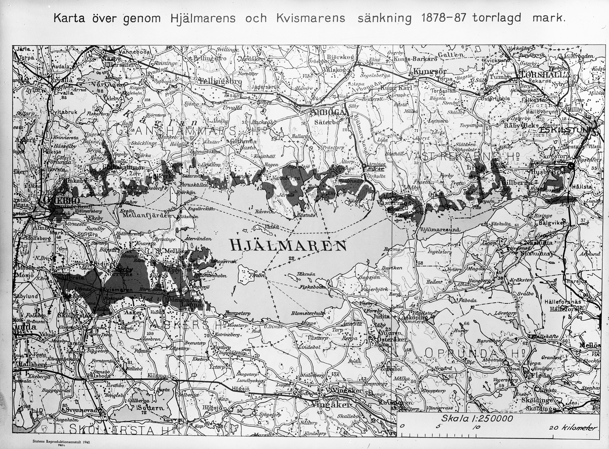 Karta över Hjälmarens och Kvismarens sjösänkning 1878-1887, torrlagd mark.