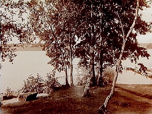 Strandparti vid sjön Lången från sommarvillan.