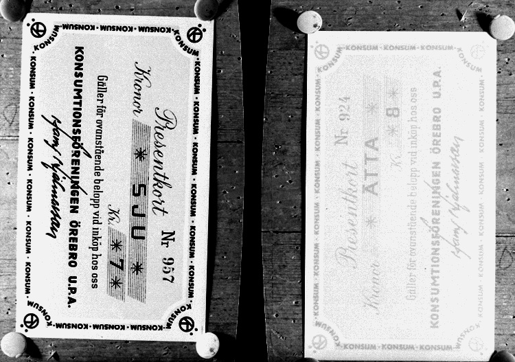 Titel: Presentkort, som gäller vid inköp hos Konsumtionsföreningen Örebro U.P.A.