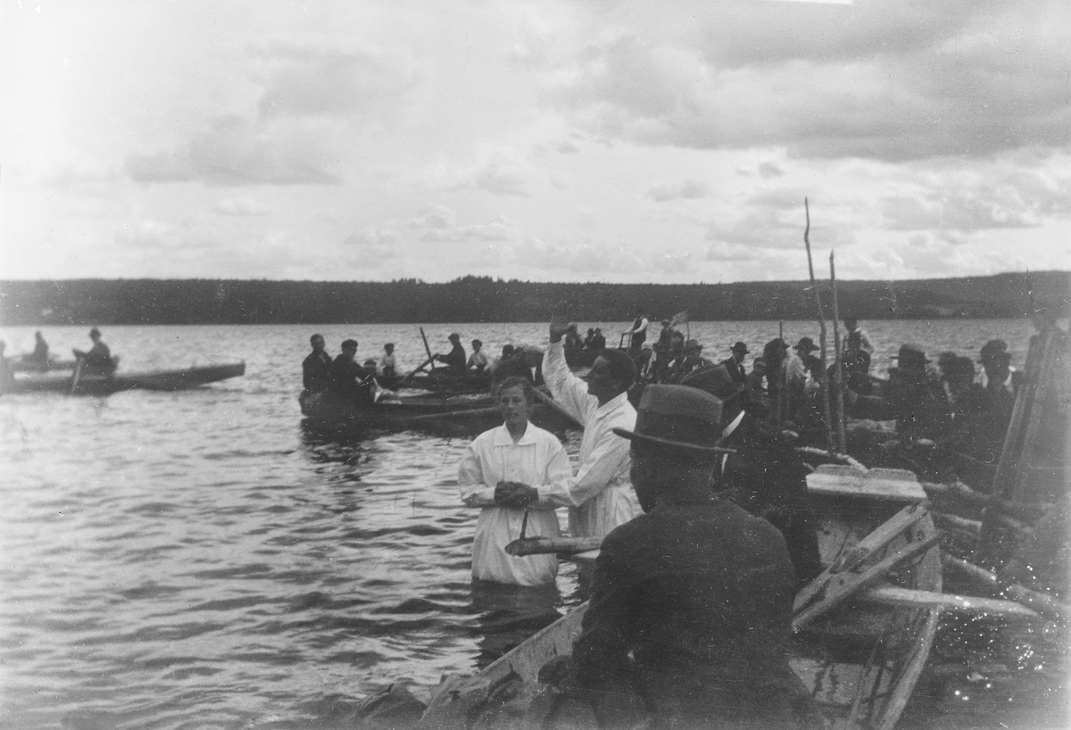 Dopförrättning vid Södra Fallet vid Löa i början av 1920-talet.