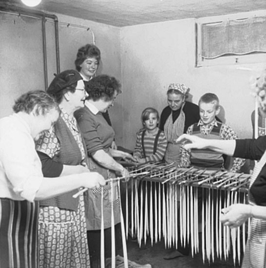 Ljusstöpning, interiör, kvinnor och barn.