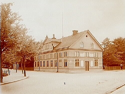 Tvåvånings bostadshus med frontespis, Arbetarföreningens hus (Stora Åvik).