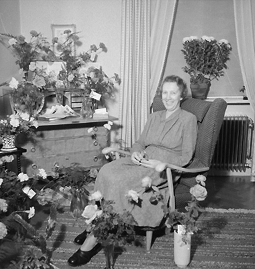 Titel: Rumsinteriör, en kvinna. Fru Göransson på 50-årsdagen.