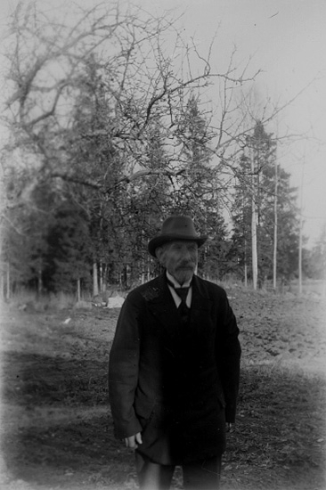 Vänster hand är ersatt med järnkrok efter tröskolycka.