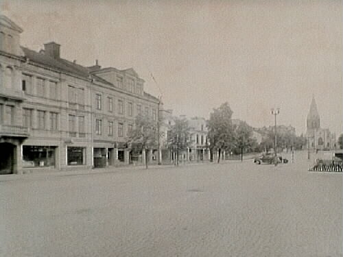 Ett tvåvånings bostadshus och två trevånings bostadshus. Nedre delen av Stortorget.