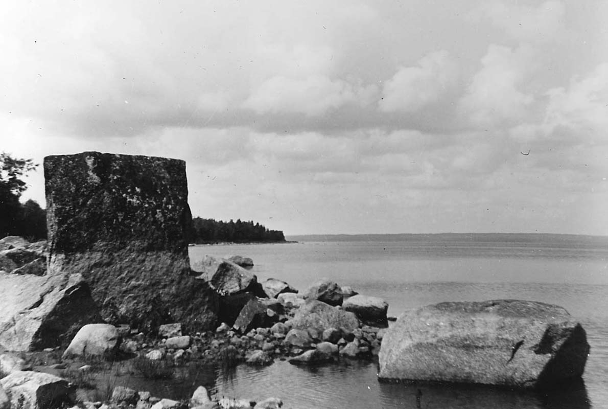 Kubbformigt stenblock vid Hallerudsbron, Unden.