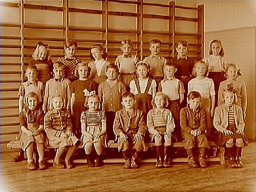 Engelbrektsskolan, klassrumsinteriör, 25 skolbarn med lärarinna fröken Herta Elander, klass 2ae, sal 5.
