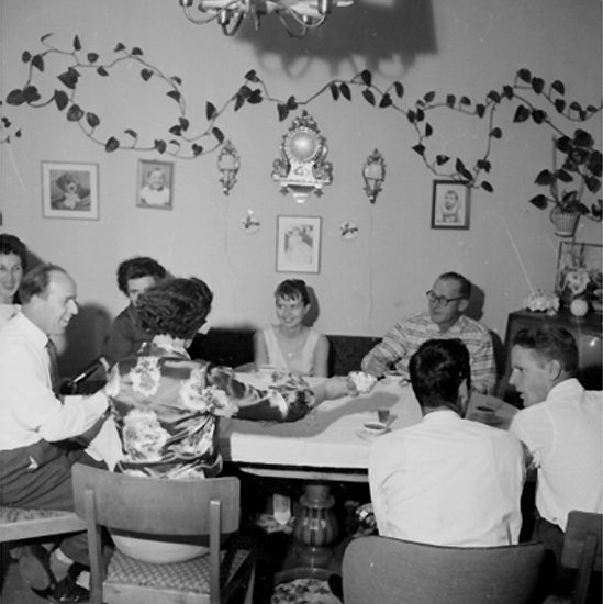 Titel: Rumsinteriör, familjegrupp vid bordet. Jönsson