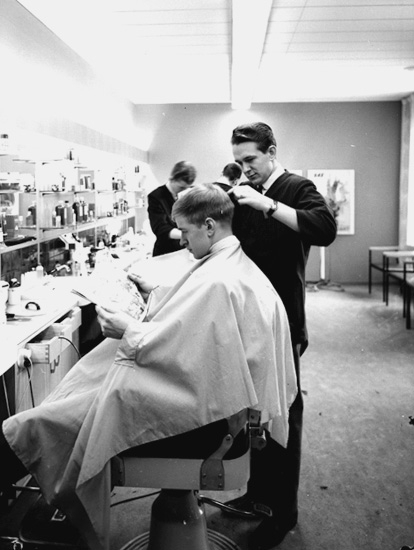 Domus herrfrisering, interiör, kunder och personal.