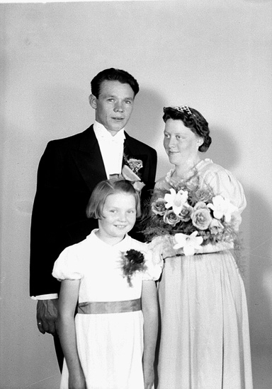 Brudpar och en flicka.