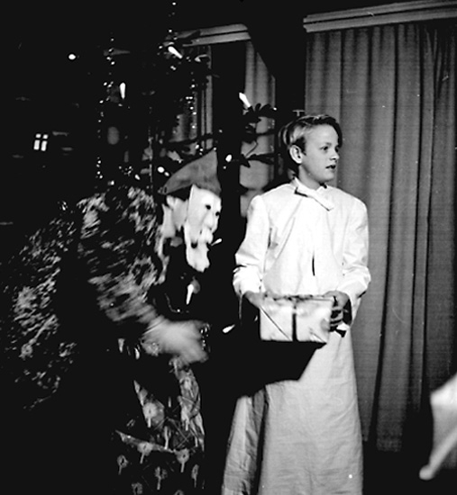 Meeths Luciafest, interiör, två personer vid julgranen.