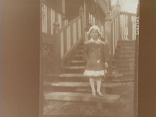 Bostadshus, en liten flicka på trappan till huset.