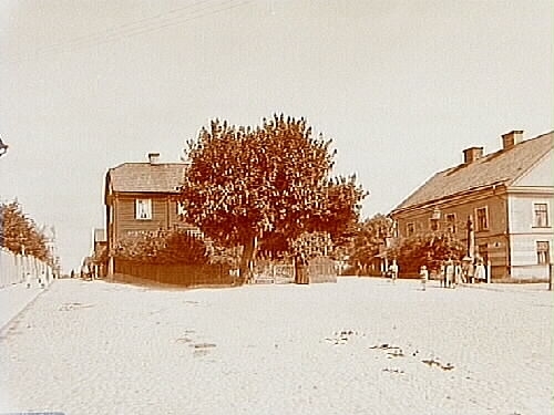 Storgatan och Lillågatan mot norr med f. d. Garvaren Teodor Westerlings gård som mittenparti.