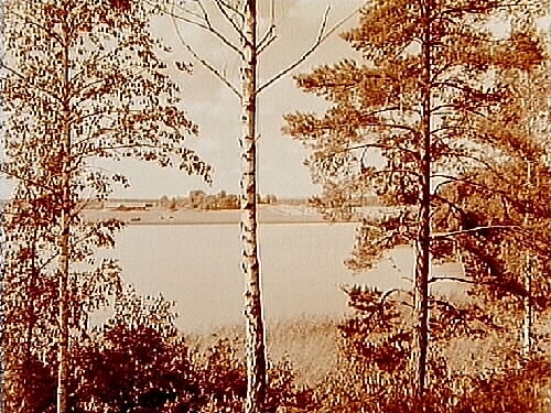 Strandparti vid Lången vid sommarvillan Holmgården.