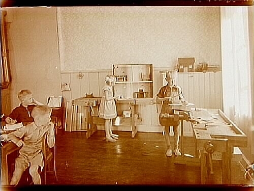 Sofielunds lekskola, interiör, 4 lekande barn.
