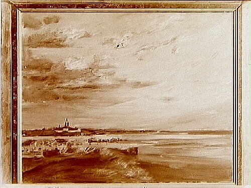 Oljemålning. Motiv: Landskap, av konstnären Kalle Eklund, 1935.
