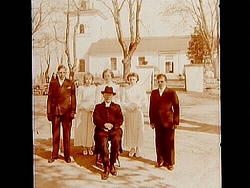 Konfirmander, 3 flickor, 2 pojkar och pastor Thorman.
