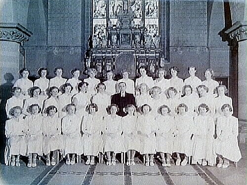 Konfirmander, 36 flickor och pastor Torsten Holm.