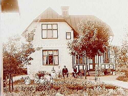 En och en halvplans bostadshus, vinkelbyggt, med glasad veranda, reviterat, brutet tak