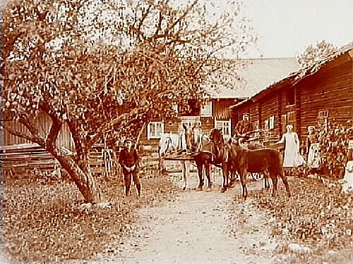 Ekonomibyggnader i liggtimmer.