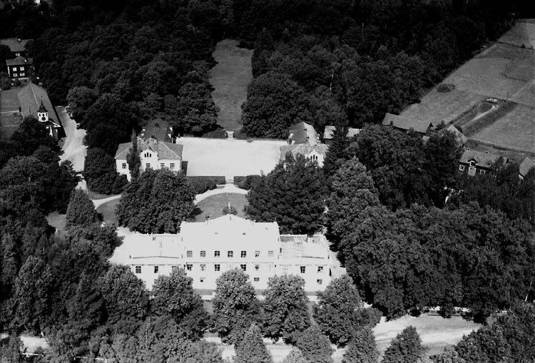 Flygfoto över Dylta Bruk, herrgårdsbyggnad.