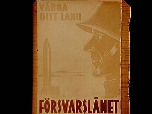Texten på bilden: VÄRNA DITT LAND, teckna på FÖRSVARSLÅNET.