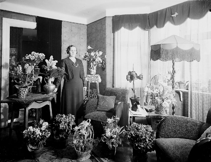 Rumsinteriör, en kvinna.