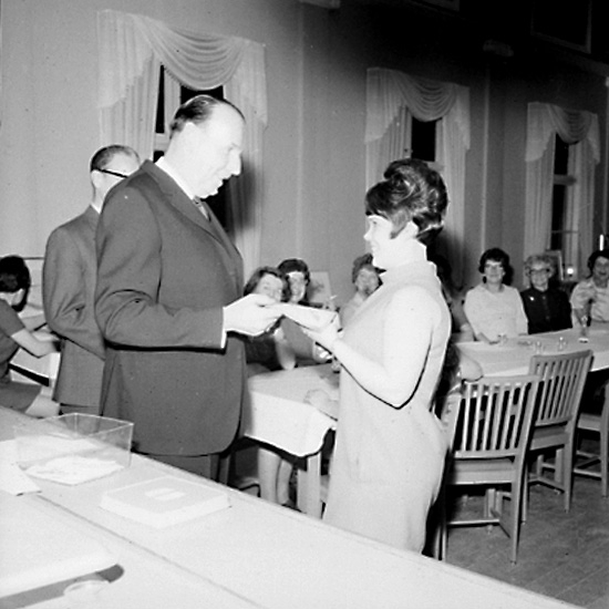 Interiör, grupp vid bordet. Kexens Konstklubb.