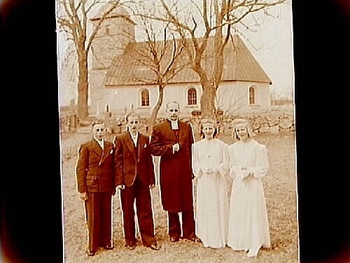 Konfirmander, 2 flickor, 2 pojkar och kyrkoherde G. Skjöldebrand, Kil.