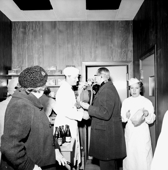 Konsum Tybble, affärsinteriör med kunder och personal.