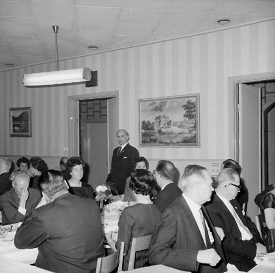 Titel: Rumsinteriör, grupp. Olle Carlbergs 50-årsfest i Arbetarföreningens lokal (ÖAF) på Slottsgatan.