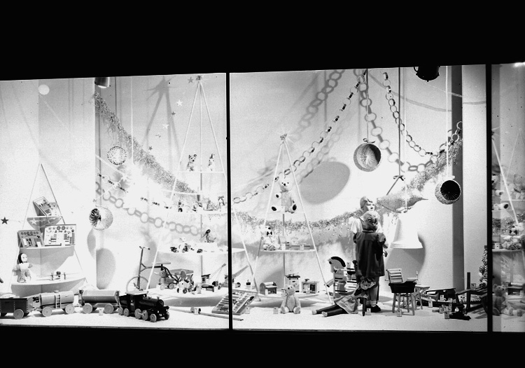 Konsum, skyltfönster, leksaker. Julskyltning.