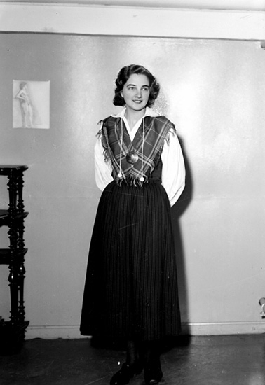 En kvinna i folkdräkt.