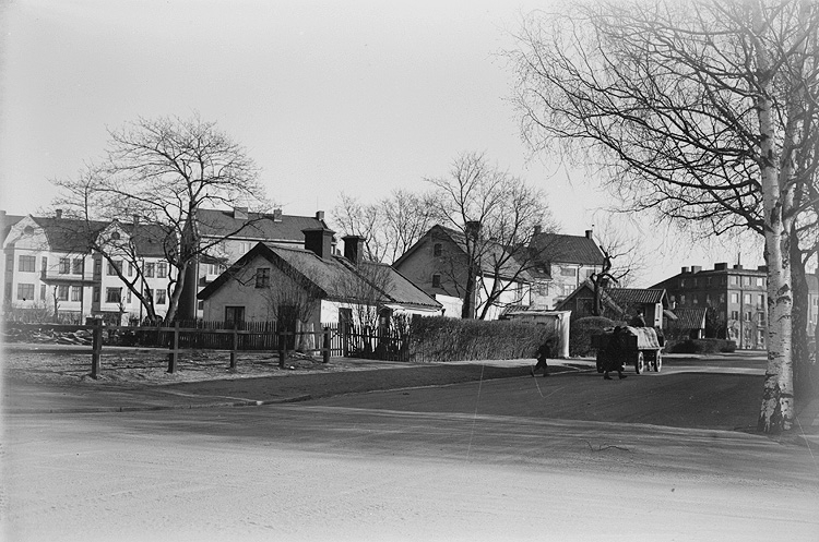 Hörnhuset till höger bakom träden är hörnhuset Manillagatan- Rudbecksgatan.