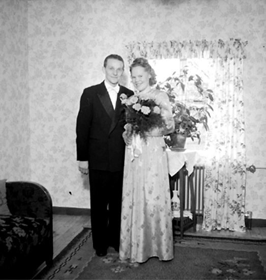 Rumsinteriör, bröllop, brudpar.