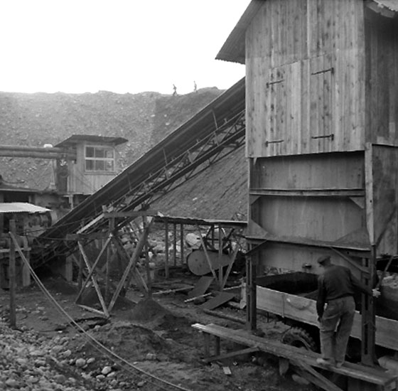Stenkrossen med arbetare.