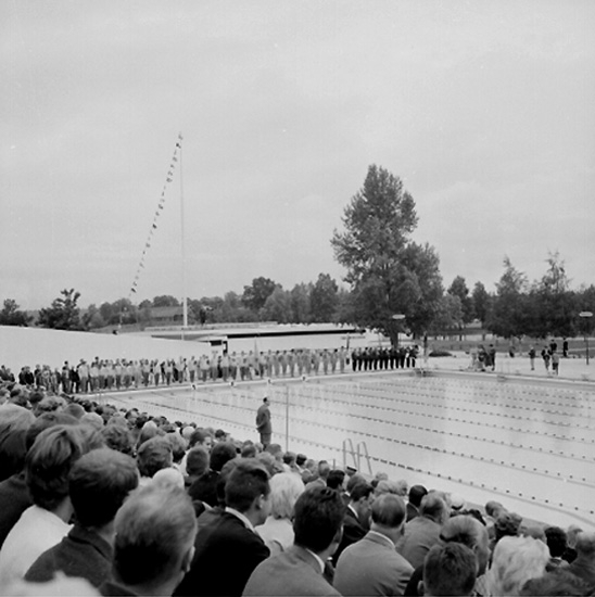Gustavsvik, simning, simlandskamp Sverige-Frankrike.