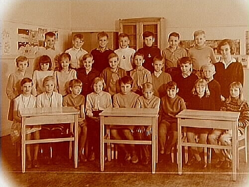 25 skolbarn och lärarinna fröken Barbro Samuelsson.