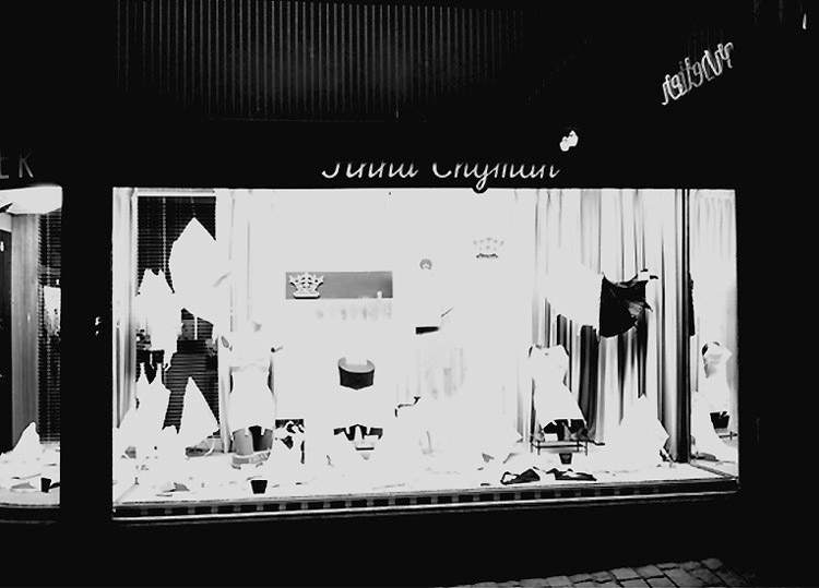 Anna Engman, affärsbyggnad, skyltfönster med underkläder.