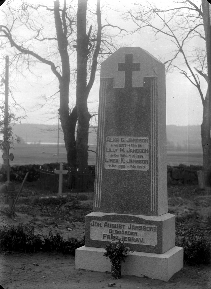 Gravsten, Joh. August Janssons familjegrav. Olsgården.